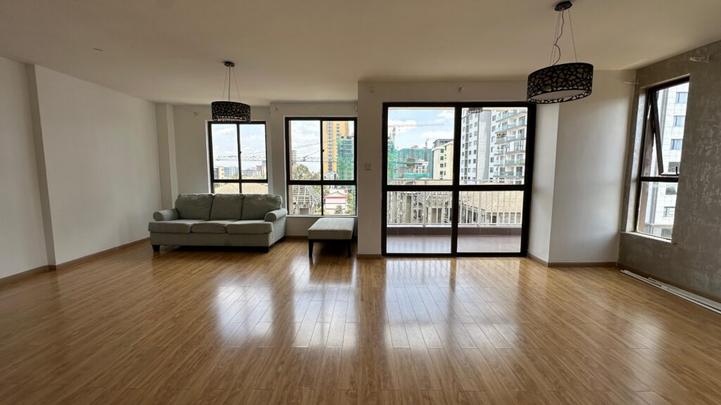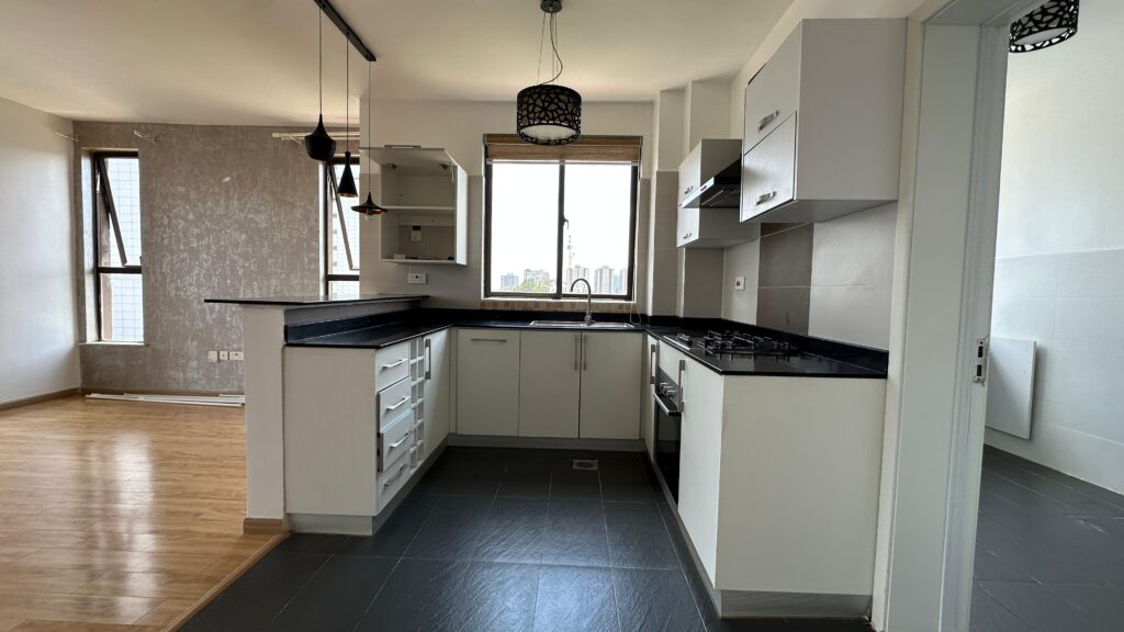This 3-bedroom apartment for rent in Kilimani offers modern luxury and convenience at Ksh 150,000 per month. It is located in one of Nairobi’s most popular neighborhoods, close to major shopping malls, schools, and restaurants. The apartment combines elegant finishes with a calm atmosphere, creating a perfect home for families or professionals.