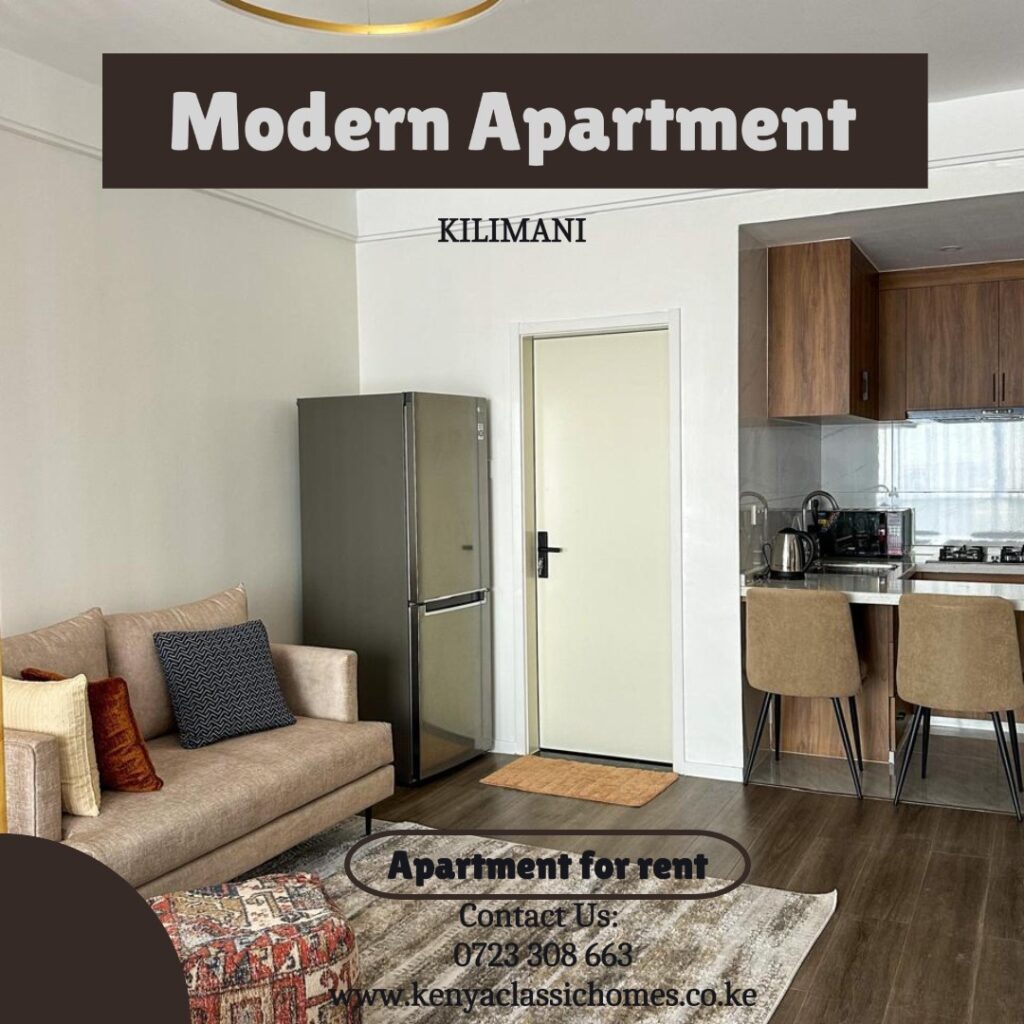 For more apartments in Kilimani, explore Kenya Classic Homes serviced apartments or internal listings for apartments for rent in Kilimani.